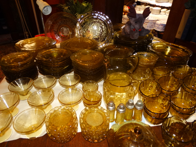 Also The Almost Unbelievable Set of 177 pcs Amber Depression Glass “Madrid”