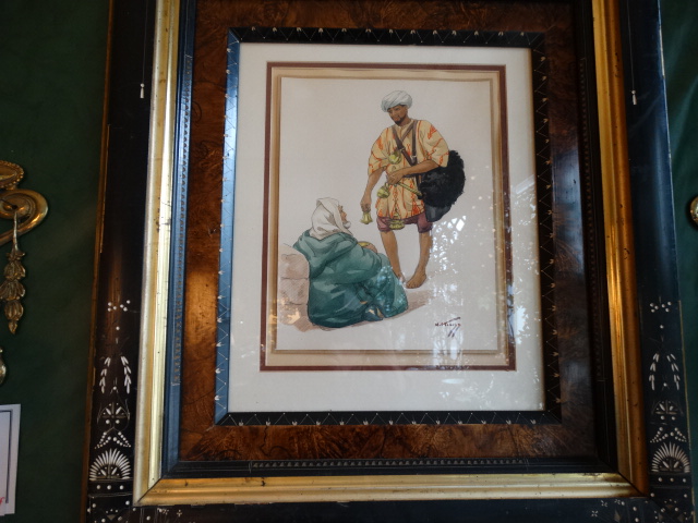 Original Watercolor “Giving To The Poor” in a Wonderful Antique Frame